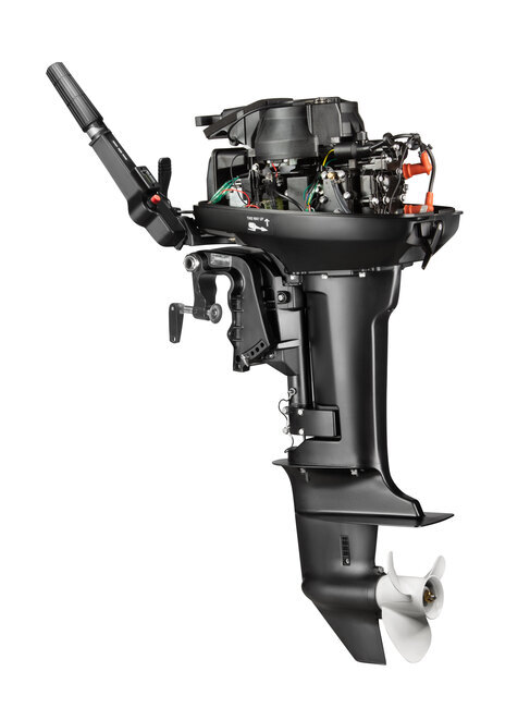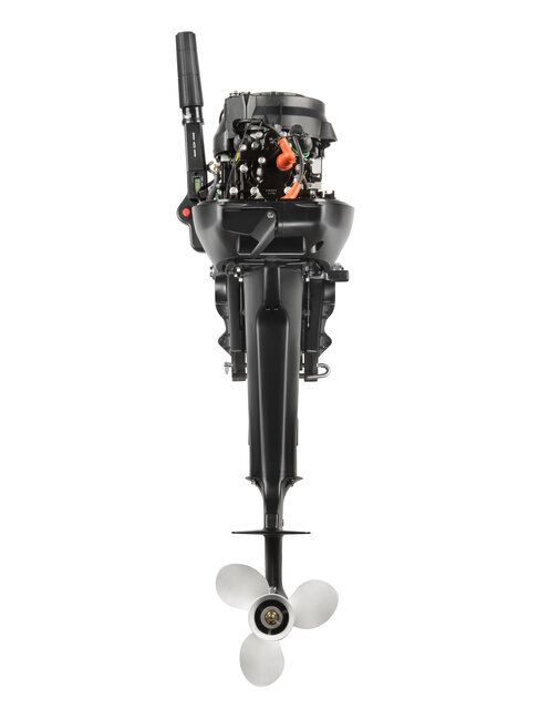Мотор запускается ручным стартером и управляется стандартным румпелем с поворотной ручкой газа (гашеткой мотоциклетного типа) с антипроскальзывающими насечками.