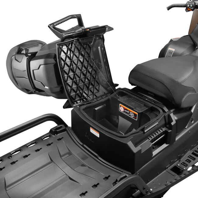 Обогрев рукояток руля, курка газа, сиденья водителя. Разъем для обогрева шлема, багажный отсек 15л. под сиденьем, перчаточный ящик, съемное сиденье пассажира, ЖК приборная панель 6,8 дюйма, совместимость с популярными снегоходными аксессуарами, ТСУ